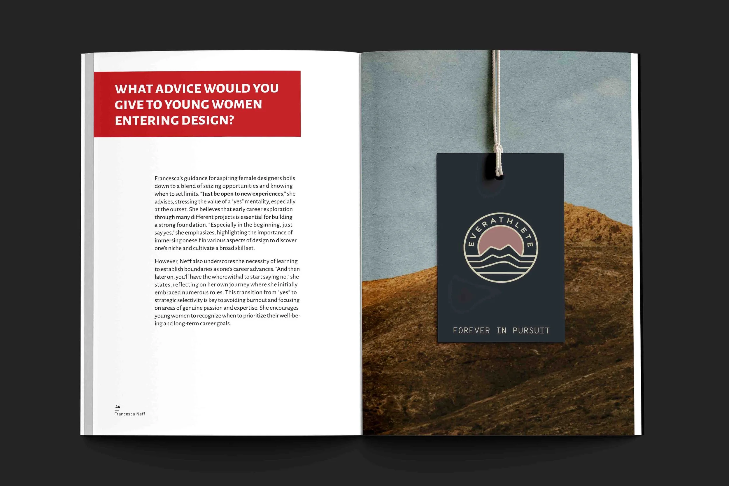Francesca’s guidance for aspiring female designers boils down to a blend of seizing opportunities and knowing when to set limits. “Just be open to new experiences,” she advises, stressing the value of a “yes” mentality, especially at the outset. She believes that early career exploration through many different projects is essential for building a strong foundation. “Especially in the beginning, just say yes,” she emphasizes, highlighting the importance of immersing oneself in various aspects of design to discover one’s niche and cultivate a broad skill set.